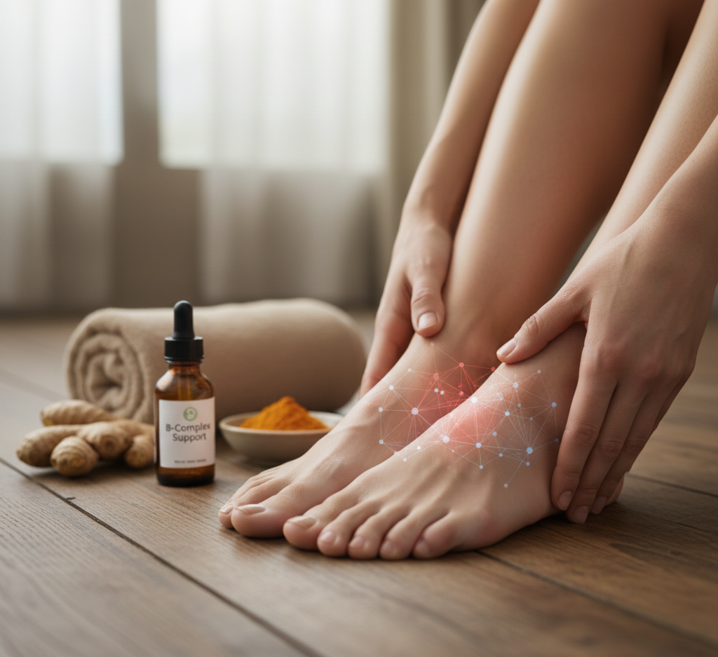 Low levels of certain vitamins—especially B1, B6, B12, and sometimes vitamin E—can interfere with healthy nerve function and myelin repair. Heavy alcohol use, chemotherapy drugs, and some other medications can also damage peripheral nerves and trigger symptoms in the feet.